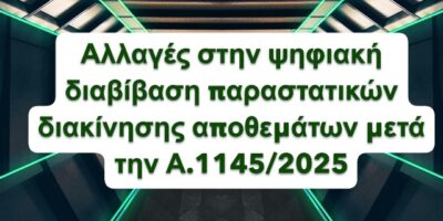 Διαβάστε εδώ τις επικαιροποιημένες αλλαγές που αφορούν την ψηφιακή έκδοση και διαβίβαση των παραστατικών διακίνησης αποθεμάτων μετά την απόφαση Α.1145/2025 ή οποία τροποποίησε την απόφαση Α.1122/2024. Περιέχει, εκτός των ημερομηνιών ένταξης σε Α’ και Β’ φάση, τις αλλαγές στις εξαιρέσεις έκδοσης στοιχείου διακίνησης τις διατάξεις εξαιρέσεων που καταργούνται από την 1.12.2025 και εφεξής (σε σύγκριση με […]